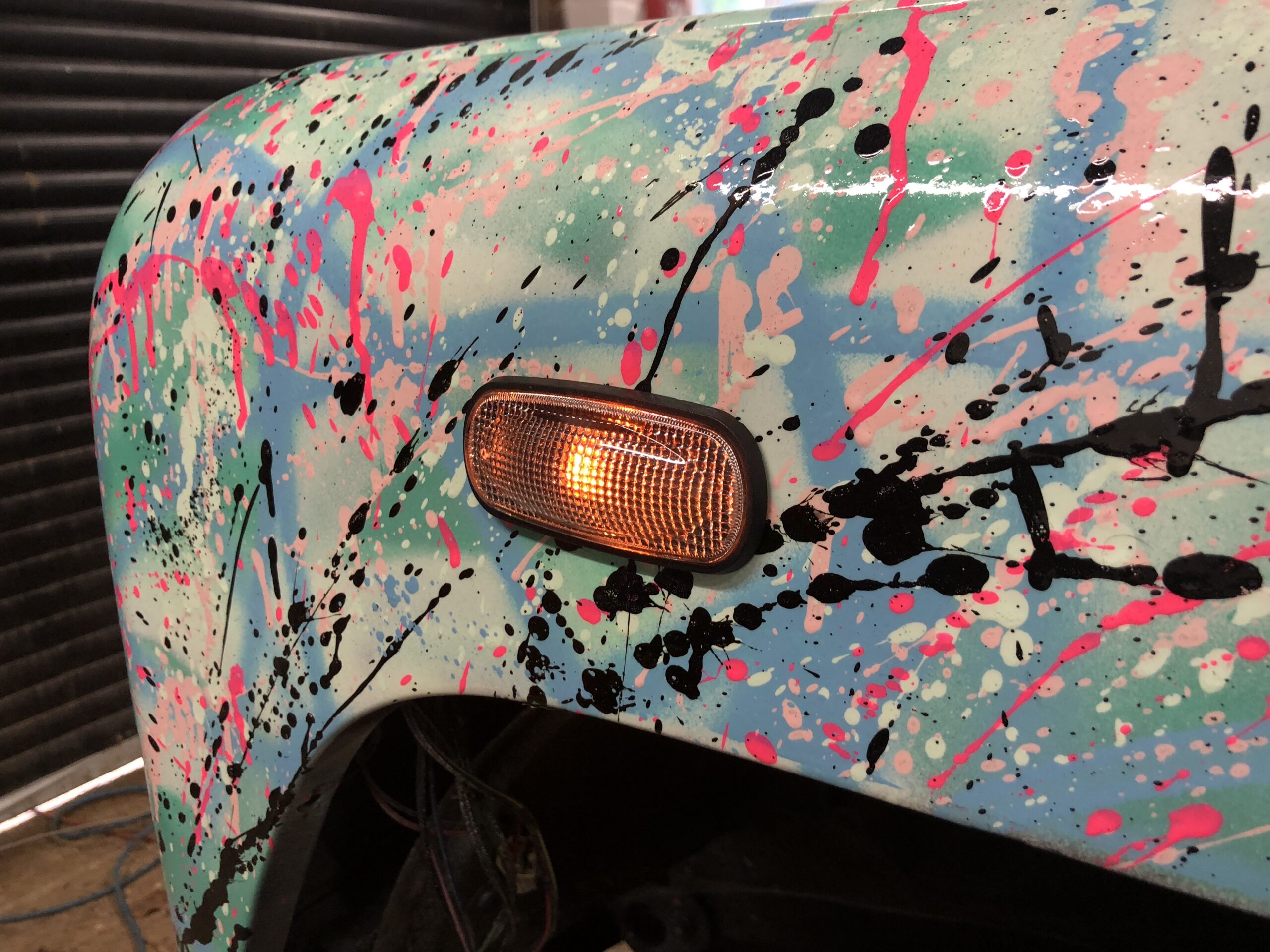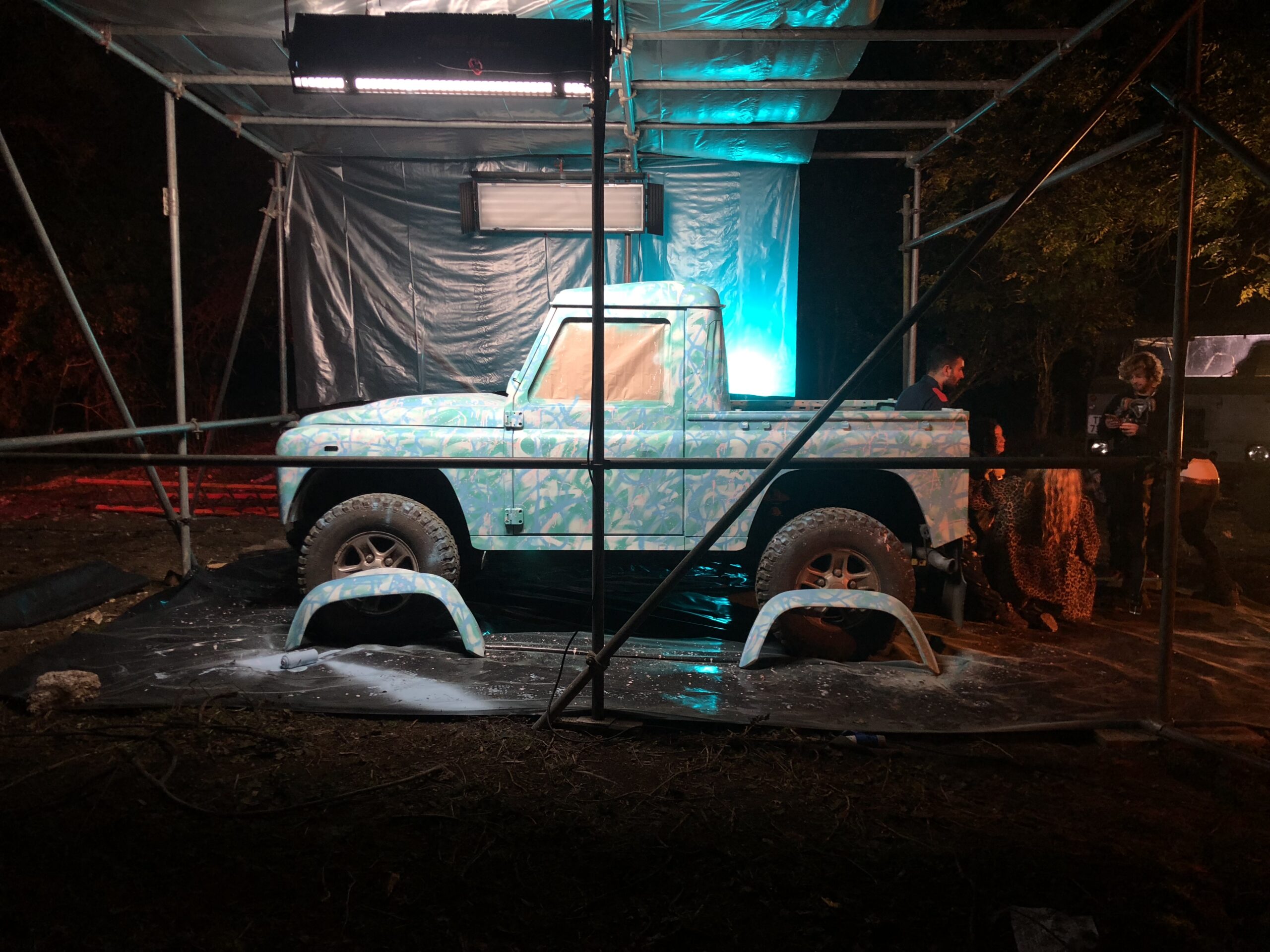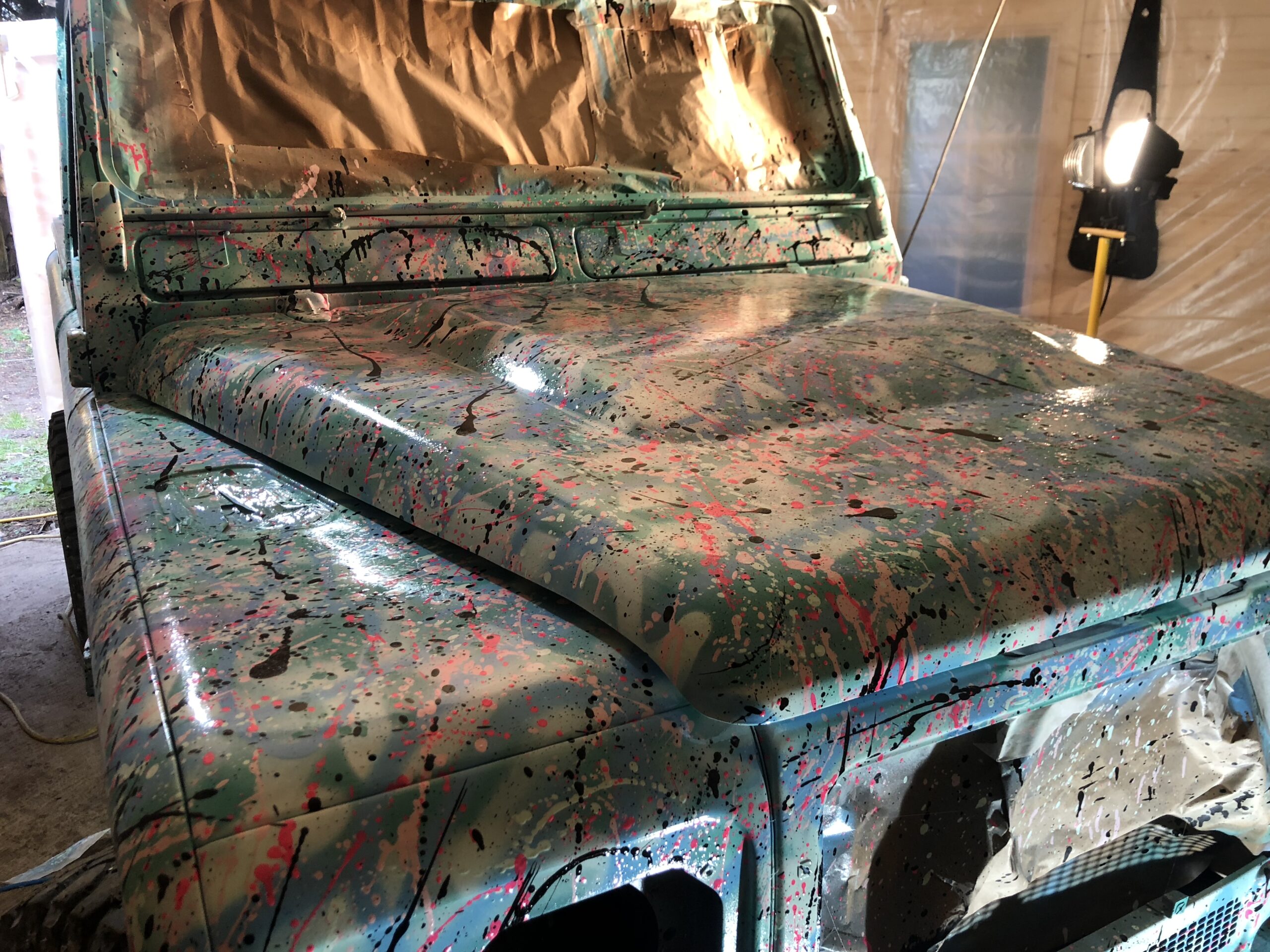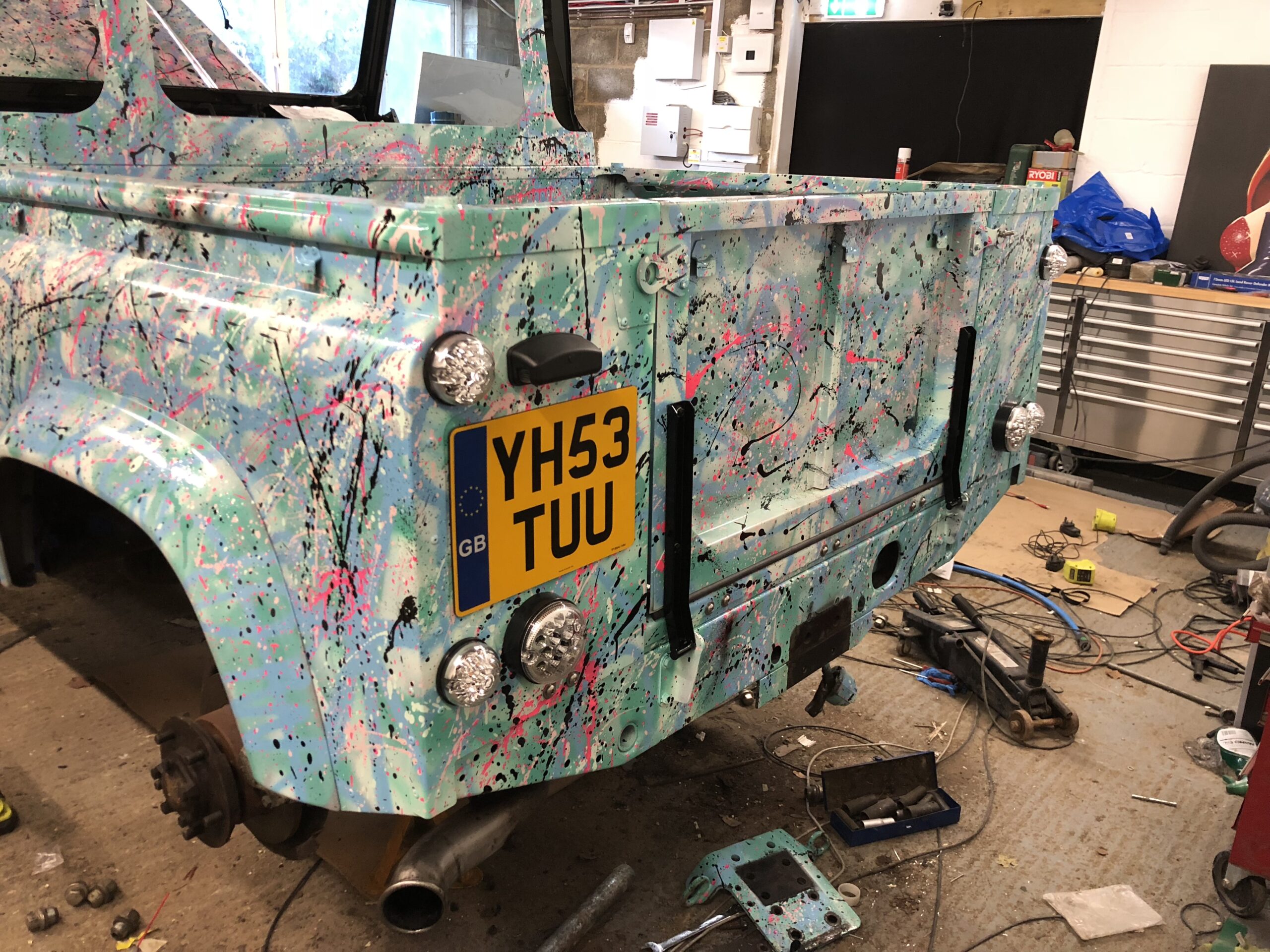 Positioned in a rural piece of wasteland, we constructed some scaffolding to hold a cover incase of rain. The paint job was filmed for a clients work which you can see here:
